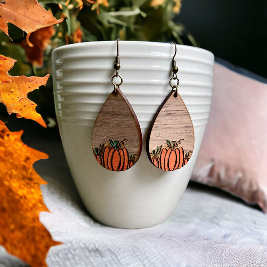 Wooden Pumpkin Dangle Earrings