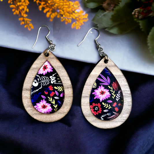 Floral Dancing Skeleton Dangle Earrings