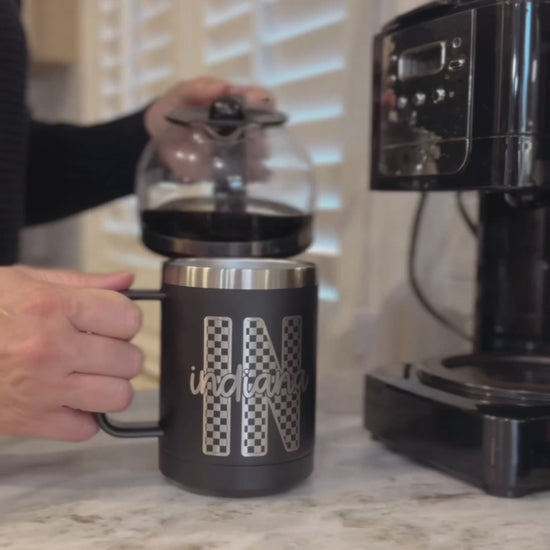 15 oz Checkered Indiana Stainless Steel Coffee Mug