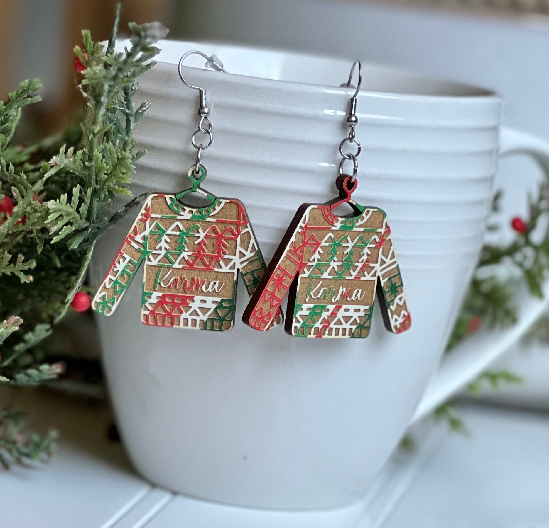 Complete your Christmas outfit with these personalized ugly Christmas sweater earrings.