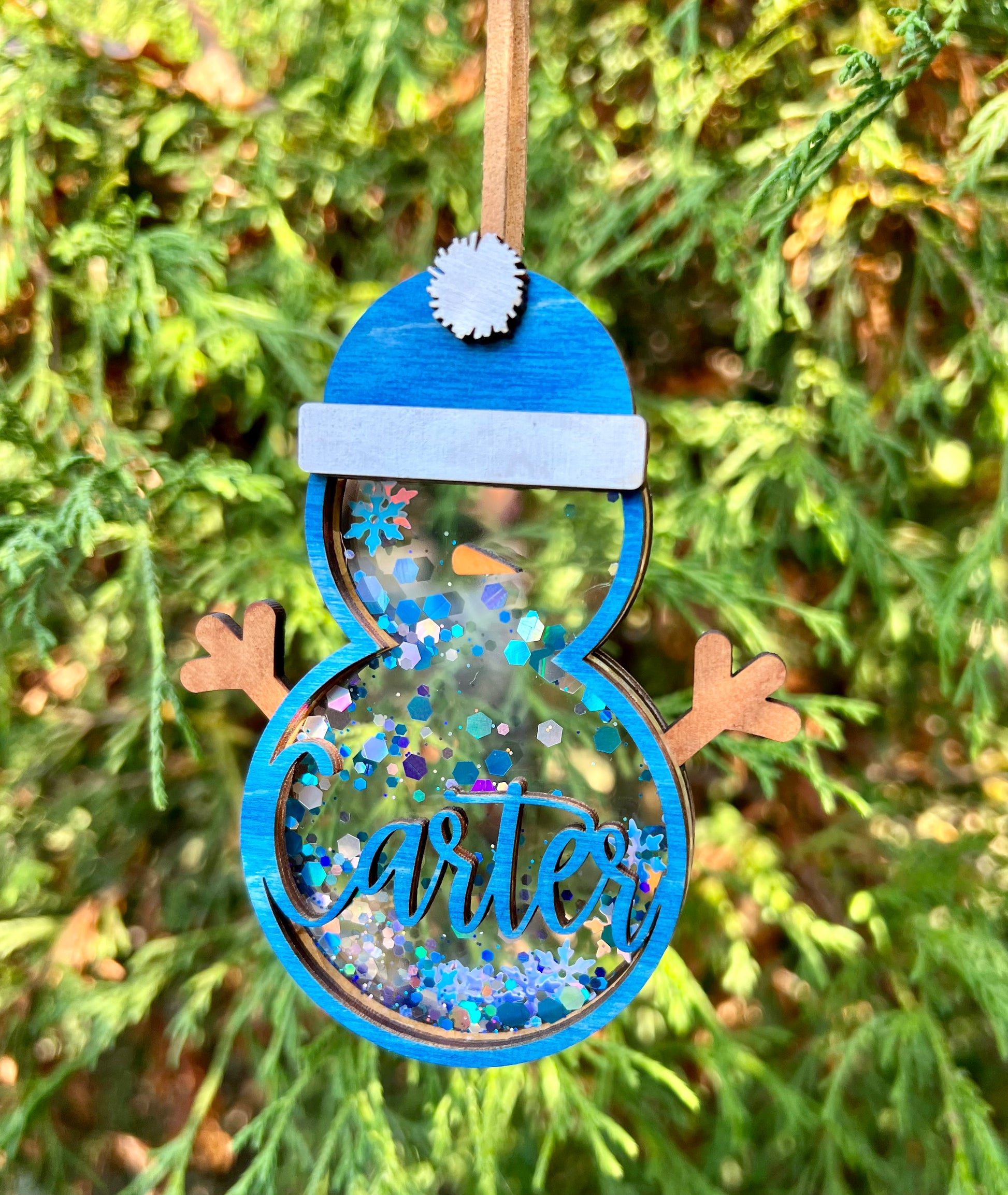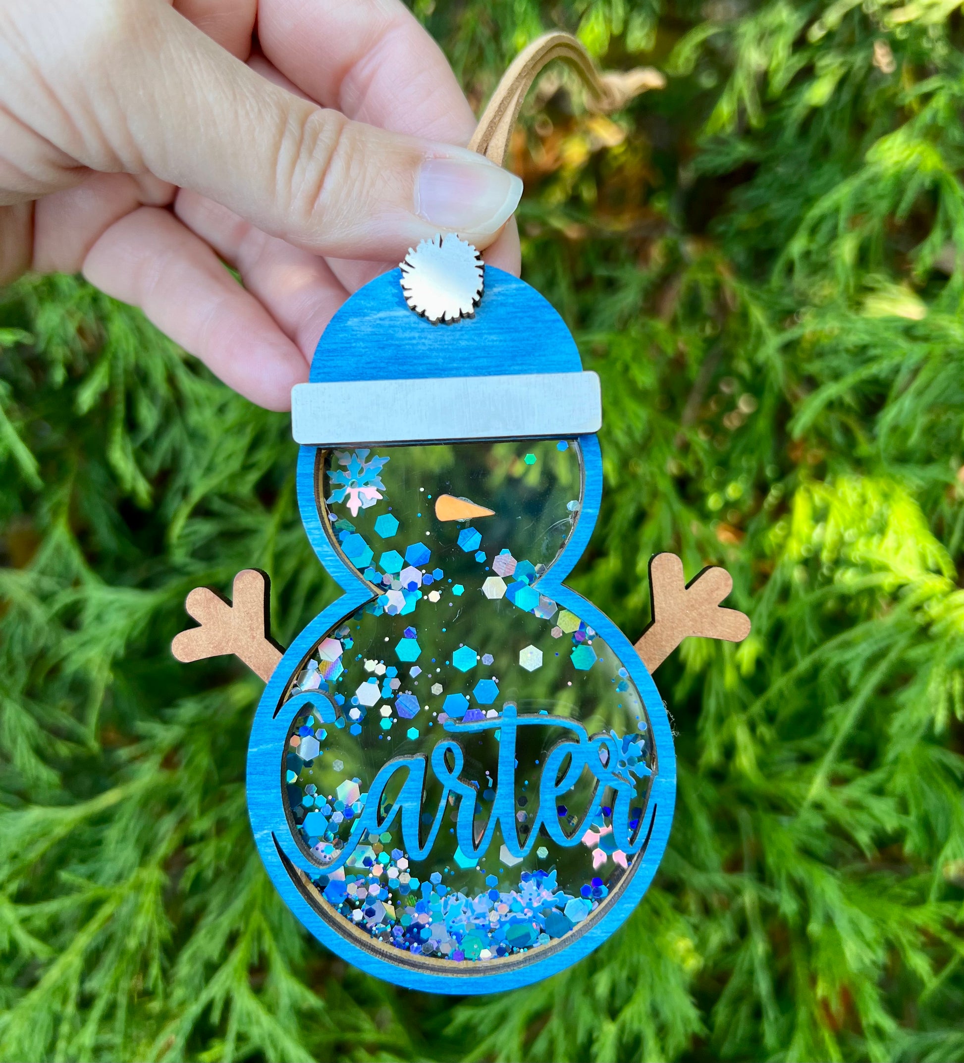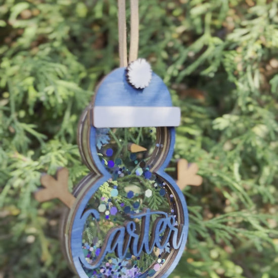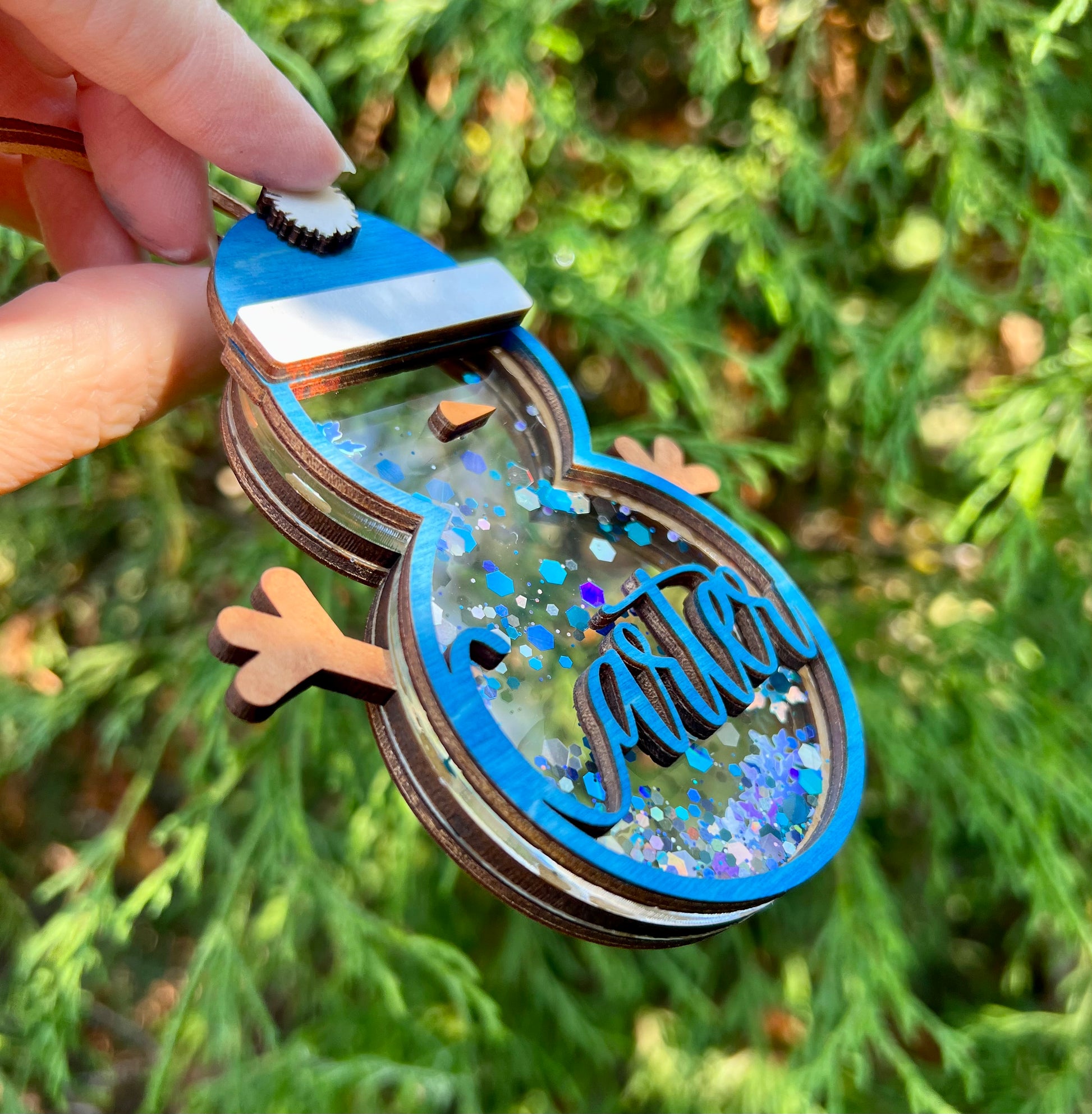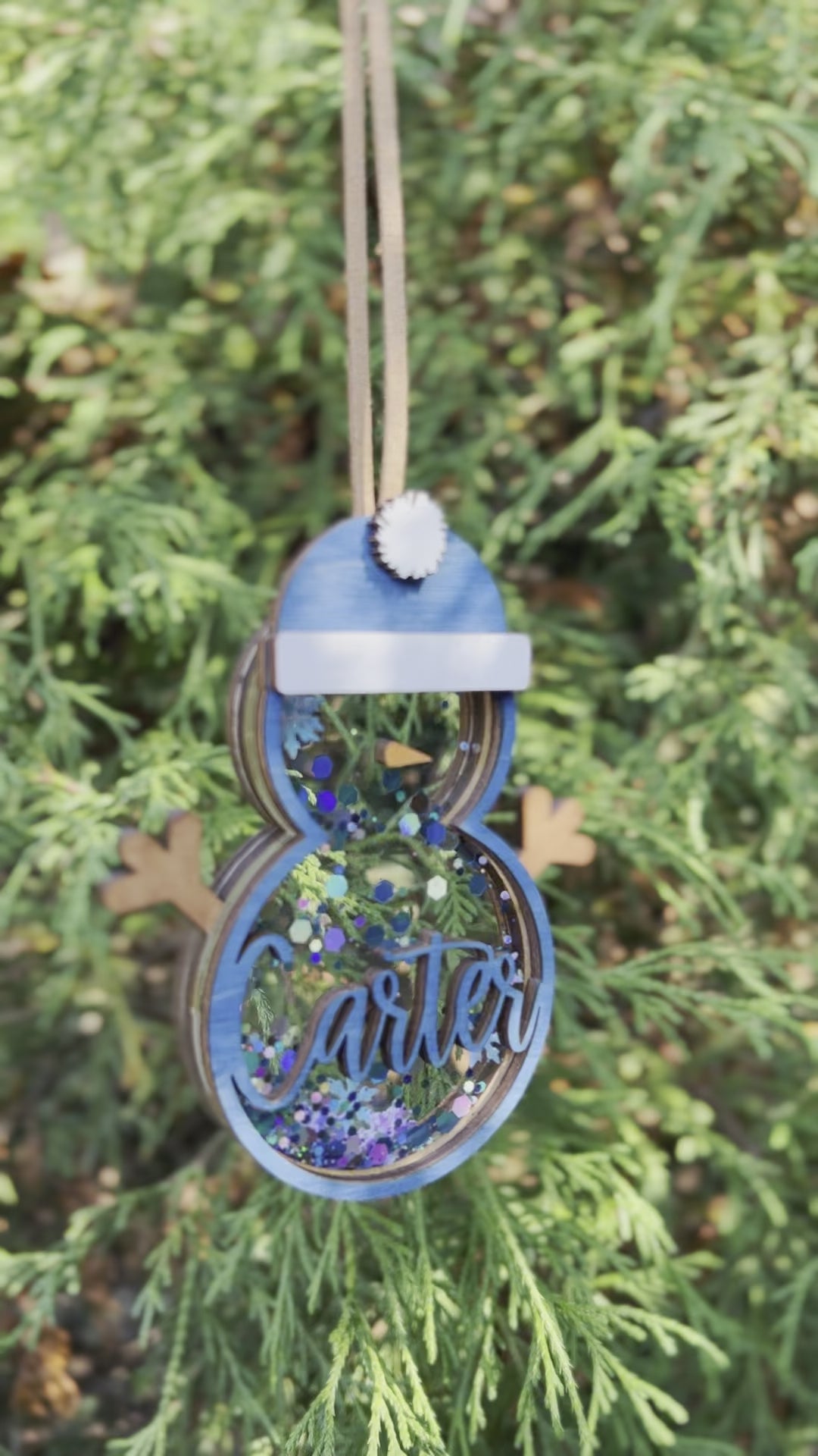Introducing our Personalized Snowman Shaker Ornament, a delightful addition to your holiday decor! Crafted with care using high-quality wood, acrylic, and a touch of glitter magic, this ornament is a perfect way to add a touch of whimsy to your tree.